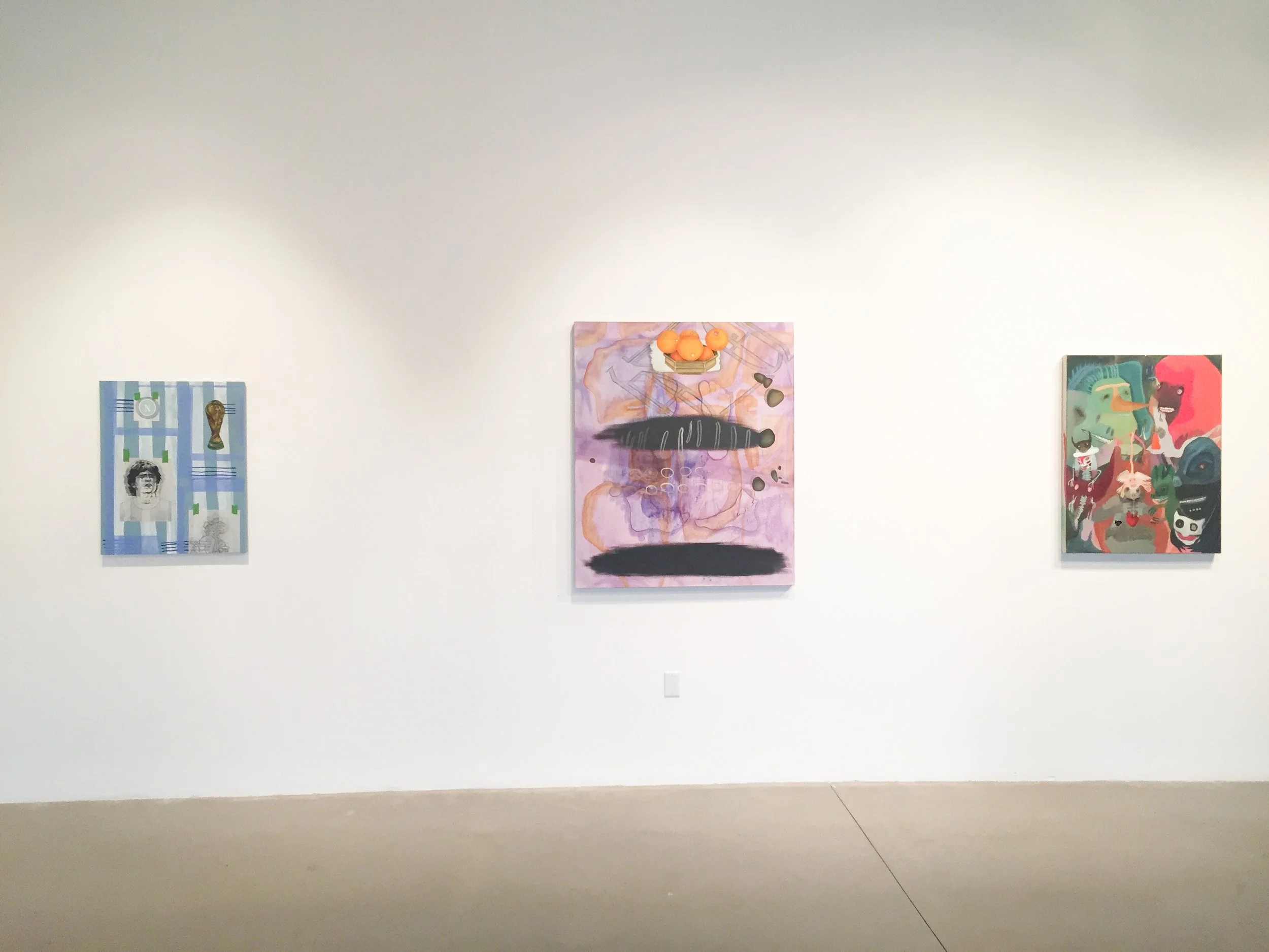 Fiction Follows Form at the Los Angeles Mission College Gallery, 2019, curated by Adam Scott. Pictured: Michael R. Leon (left), Lydia Maria Pfeffer (middle) and Sydney Croskery (right).